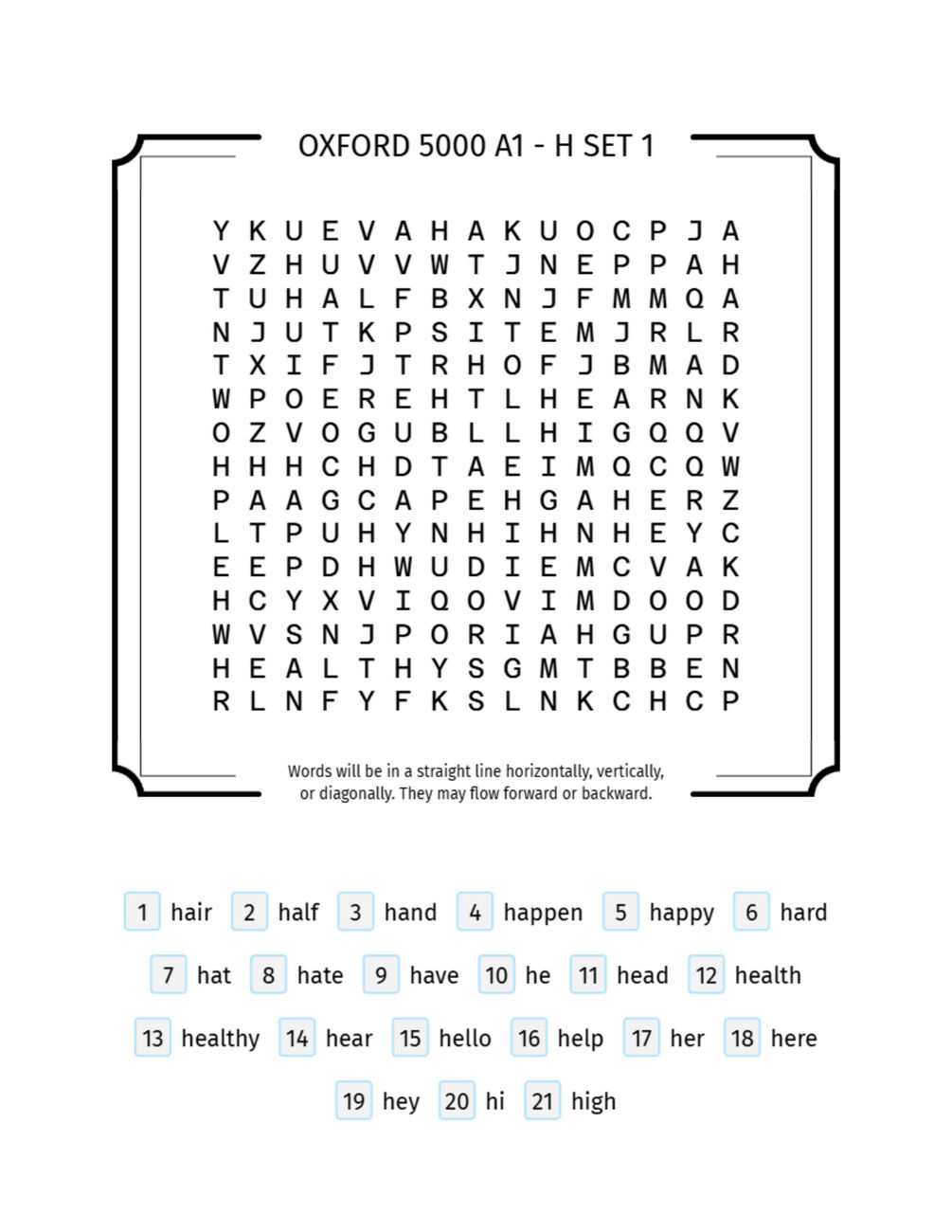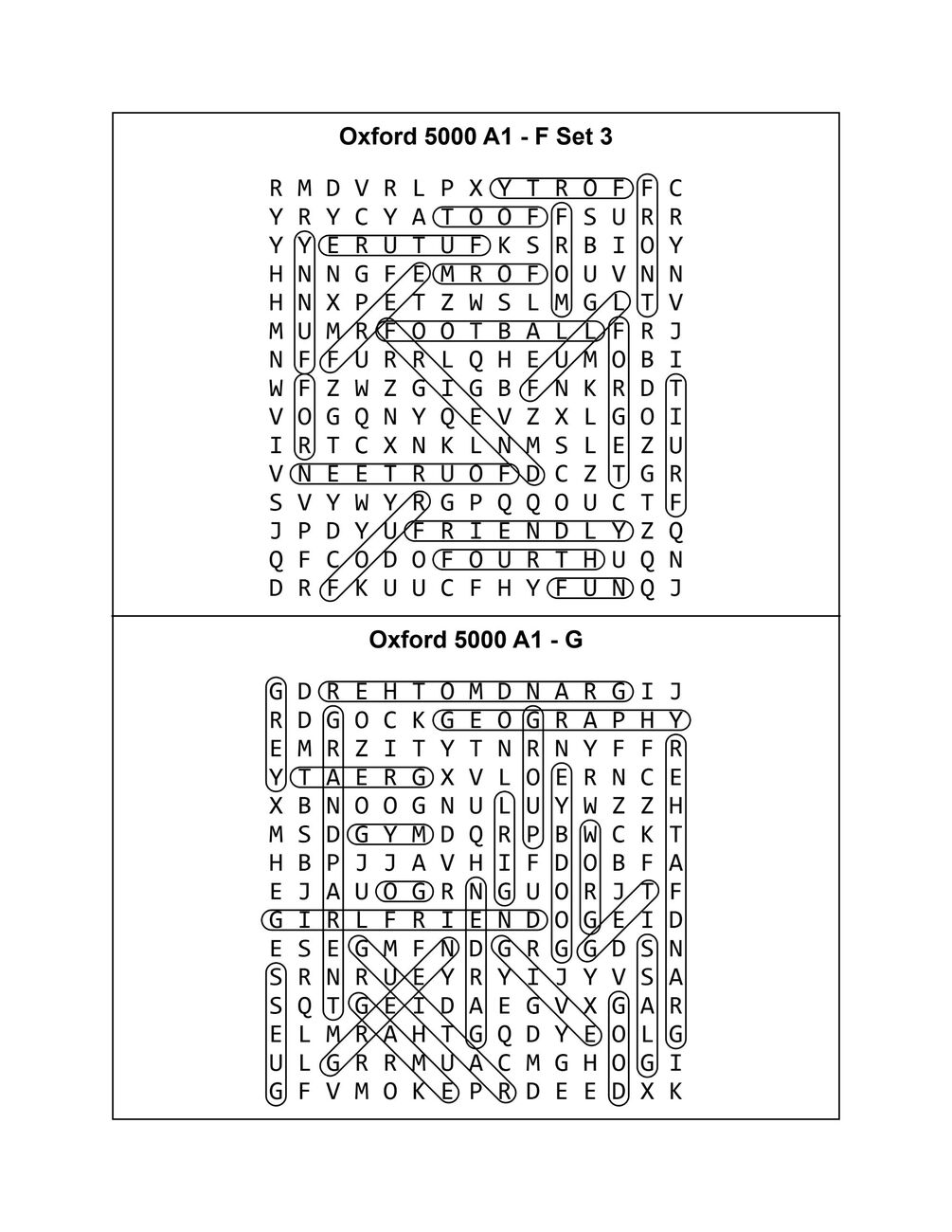 Oxford 5000 A1 Word Search Puzzles - Alphabetical ESL Vocabulary Practice